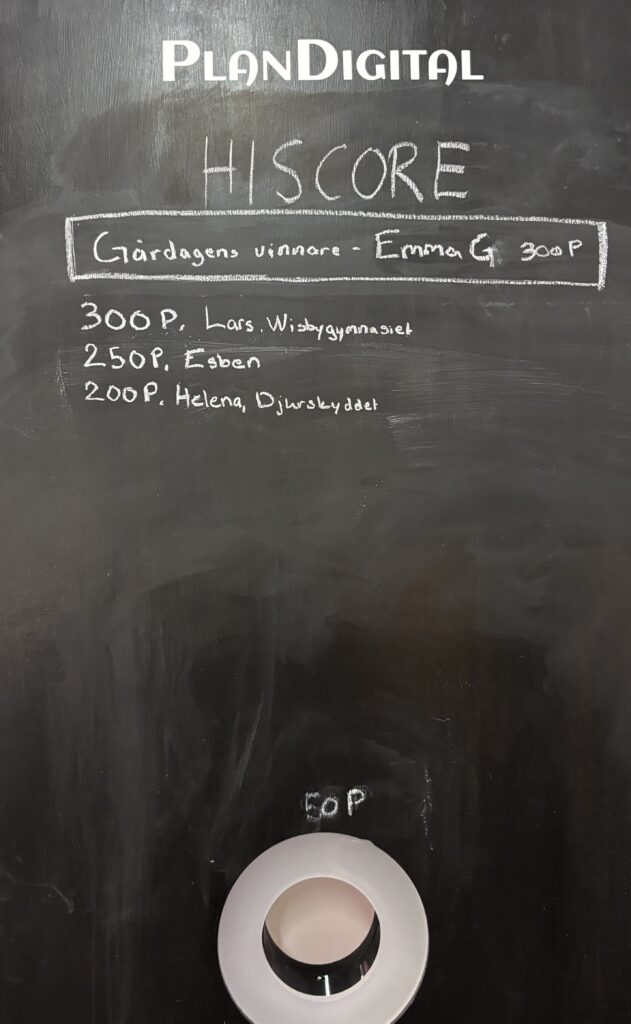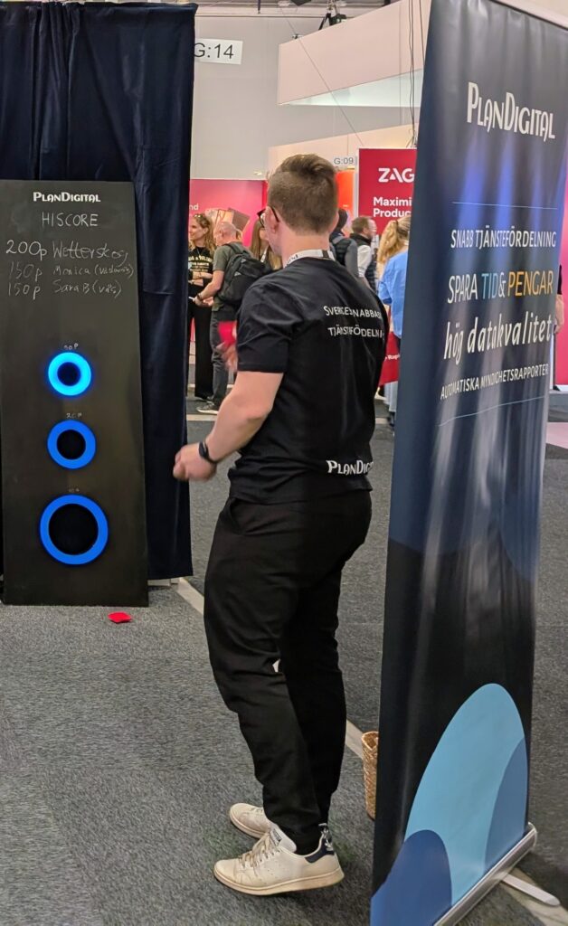 Vi hade även i år med oss vårt omtyckta ärtpåse-spel, men i en uppdaterad version. Joel som tidigare har arbetat som tekniker på ett Science Center är fenomenal på elektrifierade hantverk. Han har gjort förra årets spel interaktivt genom att addera ljus och ljud. När man träffar ett hål så lyser det upp och olika ljud spelas beroende på vilket av hålen du träffar – en rolig uppgradering och knappast den sista vi kommer göra. Det blir säkert mer digitaliserat nästa år!